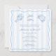 Moderne, handgezeichnete Seafood-Boil-Brautparty- oder Verlobungsparty-Einladungskartengestaltung mit originalen Doodle-Style-Illustrationselementen. Hier in Blau und Weiß dargestellt, beachten Sie bitte, dass ALLE Farben aller Elemente angepasst werden können (Streifen, Hintergrund, Krustentiere, Rahmen). Alle Kunstwerke in dieser Einladungskollektion sind meine eigenen Originalarbeiten (handgezeichnet und/oder handgemalt).