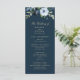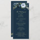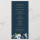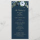 Ein Blumenmotiv mit Aquarell und hellblauen Blumen. Sie können den Text und die Farben auf diesem Hochzeitsprogramm personalisieren.
