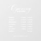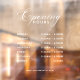 Die Trendy Script Business Opening Hours Transparent Window Cling ist entworfen, um Geschäftszeiten stilvoll und professionell darzustellen. Sie kombiniert elegante Schrift-Typografie mit einem sauberen, modernen Layout.
