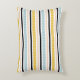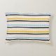 Modernes Akzent Kissen mit blauen, schwarzen, pfirsichfarbenen, weißen und goldgelben Streifen.