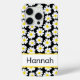 Diese Hülle für das iPhone 15 Pro ist so süß und Mädchenhaft! Das moderne, trendige Gänseblümchen-Blumenmuster mit weißen und gelben Gänseblümchen in verschiedenen Größen auf schwarzem Hintergrund und Ihr Name in einer lustigen, trendigen Schrift wird zu allem passen! Es wird auf Ihrem Handy fantastisch aussehen!