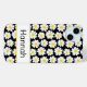 Diese Hülle für das iPhone 15 Plus ist so süß und Mädchenhaft! Das moderne, trendige Gänseblümchen-Blumenmuster mit weißen und gelben Gänseblümchen in verschiedenen Größen auf schwarzem Hintergrund und Ihr Name in einer lustigen, trendigen Schrift wird zu allem passen! Es wird auf Ihrem Handy fantastisch aussehen!
