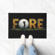 Golf Bad Badematte. Diese Badematte zeichnet sich durch ein humorvolles und stilvolles Design aus, das sich perfekt für Golfer eignet. Das Wort "FORE" wird in großen, texturierten Goldbuchstaben hervorgehoben, wobei die Silhouette eines Golfers in Aktion den Buchstaben "O" ersetzt. Ein Golfball und ein Putting Green mit einem Loch tragen zum Thema "Spielspass" bei. Die Badematte ist ideal für Sportler und eignet sich hervorragend für Golfer, ob zum Geburtstag, zum Vatertag oder zu Weihnachten. Das elegante und unterhaltsame Design ist ideal, um jedem Bad eine Touch Spaß und Persönlichkeit hinzuzufügen. Diese Badematte ist für jeden, der Golf Lieben hat, ein Muss.