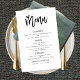 Trendy Künstlerischer Skripttext nur Hochzeitsmenü. Eine informelle Set-Typografie in Schwarz-und Herzmotiv für den Haupttitel Menü ergänzt die Erholung des Textes, die Sie leicht personalisieren können.