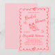 Trendy retro-inspirierte rosa und rote Brautdusche mit einem gewellten Rahmen, skurrile handgezeichnete Herzenzeichnungen und mit Coquette-Bögen geschmückte Brautkopfpumpen und "Brautparty" und der Name der Braut in einem lustigen, spielerischen Drehbuch.