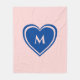 Trendy gelbe und graue Herzklopfe Valentinstag Tagesdecke mit rosa und blauem Herz auf rosa Hintergrund. Fügen Sie Ihr Monogramm hinzu oder löschen Sie es. Niedliches und bezauberndes Valentiner Tagesgeschenk.