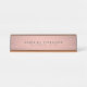 Mit diesem eleganten, modernen Schreibtisch-Namensschild präsentieren Sie Ihr Unternehmen stilvoll. Das Design zeichnet sich durch ein gürtelrosa Imitat Rose Gold-Folie Zickzack Zickzack-Muster und Ihren Namen oder anderen personalisierten Text in einem einfachen dunkelgrauen Typografie-Schriftart aus. Dieses elegante und trendige Accessoire aus Metall macht sie zu einem stilvollen Geschenk.