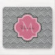 Ein trendiger Mousepad aus Deko mit einem gewölbten Skallop-Muster und einem dunkelrosa Quatrefolienmousepad, das Sie ganz einfach mit Ihrem eigenen Monogramm und Namen personalisieren können. Dies ist Teil der Black Scallops Rapture Rose Monogram Spring Collection.