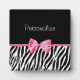 Eine trendige, schwarz-weiße Zebra-Printplakette mit einem niedlich rosa Bandbogen, der wie ein Geschenk verpackt ist. Personalisieren Sie diese, indem Sie Ihren Namen hinzufügen. Perfektes Geschenk für eine Teeny Girl!
