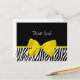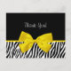 Vielen Dank an diese trendige Schwarz-Weiß-Dankeschön an die Postkarte mit einem zebrafarbenen Muster und einem niedlichen gelben Band in einem Bogen. Bleib auf der Rückseite. Flachbild, nicht echtes Band.