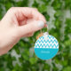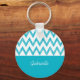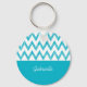 Ein trendiger, türkisfarbener und weißer Schlüsselanhänger mit einem Zickzack Bleistiftmuster, das von der Hand gezeichnet wurde. Dieses moderne und stilvolle Aqua Blue Zickzag-Design wird mit Ihrem Namen individuell gestaltet.