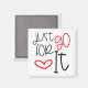 Ein modernes Design in sonderbarer Typografie das inspirierende Zitat Just Go For Es ist in Schwarz und Rot mit einem roten Herzmotiv vor einem weißen Hintergrund, der auf Wunsch in eine andere Farbe geändert werden kann.