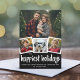 Eine beliebte Collage mit einem karierten Bauernbüffel auf der Rückseite. Fügen Sie 4 Fotos und einen Familienurlaub Gruß.