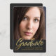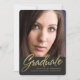 Stilvolle graue und schwarze Pinstripes Abschluss-Fotomitteilung mit eleganter handgeschriebener Skriptüberlagerung der Imitatgoldfolie. Optionales Abschluss-Party laden Rückseite des Textes an ein. Anmerkung: Dargestellt auf 12x18größe mit gestempelschnittener Wahl. Klicken Sie bitte "besonders anfertigen", um die Größen-, Form- oder Schriftartarten zu ändern.