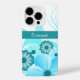 Hibiskus: Blau © Sunny Mars Designs. Herrliche, trendige, moderne, schicke, mädchenhafte, stilvolle, stilvolle, stilvolle, stilvolle iPhone Case-Mate Cover mit hübscher aquablau, aquamarin und türkisfarben Wirblen tropischen Hibiskus Blume Design. Personalisieren Sie es, indem Sie Ihren eigenen Namen oder einen anderen Text hinzufügen.