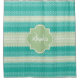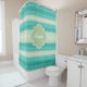 Ein trendiger, aquamariner und leicht grün gestreifter Duschvorhang aus Strick. Personalisieren Sie dieses stilvolle Strickdesign mit Ihrem Namen und Monogramm. Dies ist Teil der Arcadia Strick Pattern with Nile Green Monogram Collection. Flachbild, NICHT aus Strickgarn oder Spitzen gefertigt.
