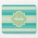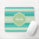 Ein trendiger, aquamariner, hellgrüner Streifen Strick Muster Mousepad. Personalisieren Sie dieses stilvolle Strickdesign mit Ihrem Namen und Monogramm. Dies ist Teil der Arcadia Strick Pattern with Nile Green Monogram Collection. Flachbild, NICHT aus Strickgarn oder Spitzen gefertigt.