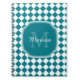 Ein trendiges aquamarin-weiß geometrisches, rautengeprüftes Monogramm-Notizbuch. Personalisieren Sie dieses stilvolle Design, indem Sie Ihren Namen und mit Monogramm Initialen hinzufügen.