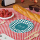 Trendy Aquamarin und White Checked Mit Monogramm N Pappteller