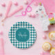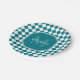 Trendy aquamarine und weiße geometrische Diamant geprüfte Fliesen Muster Monogramm Papier Teller. Personalisieren Sie dieses stilvolle Design, indem Sie Ihren Namen und mit Monogramm Initialen hinzufügen.