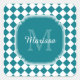 Trendy aquamarine und weiße geometrische Diamant geprüfte Fliesenmuster Monogramm Aufkleber. Personalisieren Sie dieses stilvolle Design, indem Sie Ihren Namen und mit Monogramm Initialen hinzufügen.