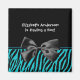 Niedliche und trendige Zebra-Babyduschaufkleber mit modernen aquamarinen und schwarzen Zebrastreifen und mit einem stilvollen, bedruckten schwarzen Band verziert. Personalisieren Sie, indem Sie den Namen der Mutter zu sein, um dieses schicke schwarz und türkis Design. Perfekte Ankündigung für die Geburt eines Kindes!