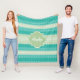 Eine trendige, helle, aquamarine, hellgrüne, gestreifte Fleecedecke aus Strick. Personalisieren Sie dieses stilvolle Strickdesign mit Ihrem Namen und Monogramm. Dies ist Teil des Arcadia Strick Patters mit Nile Green Monogram Collection. Flachbild, NICHT aus Strickgarn oder Spitzen hergestellt.