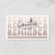 Trendige Visitenkarten für Ihren Schönheitssalon, Ihren Wellness-Center oder Ihr Friseur. Diese Termine Erinnerung Card verfügt über moderne beige ästhetische Retro-Schriftart mit Platz für Ihren Firmennamen. Auf der Rückseite finden Sie Platz für 3 Termine mit Datum und Uhrzeit sowie Ihre Kontaktdaten. Sie können alle Farben anpassen, um Ihre Marke zu Anzug, um moderne Termine Business Cards, um Ihren Kunden zu geben.