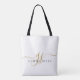 Tragen Sie Ihren Stil, wo immer Sie gehen mit dieser eleganten Monogramm Tote-Tasche. Es wurde mit anmutigen goldenen Schriftzeichen entworfen, gepaart mit einem raffinierten Serifennamen, verbindet moderne Eleganz mit alltäglicher Funktion. Diese vielseitige Tasche eignet sich hervorragend für Pendeln, Shoppingtouren oder behaltend Wesentliches, die bei der Arbeit organisiert werden. Sie eignet sich für Hochzeiten, Jubiläen, Hauswärme oder berufliche Geschenke.