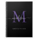 Modern Black Lila Violet Monogram Script Name Initial Notebook