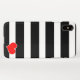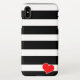 A modern and trendy design of thick black and white stripes and a red heart, that is placed in the bottom corner of the design. This item is fully customizable. You may add your own text or you may want to change the stripe colours, the choice is yours.