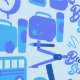Trendy Blue Back to School Muster Peel and Stick Tapete