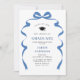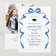 Trendy Blue Bow Ribbon 3 FOTO Graduation Party Einladung