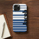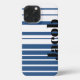 Trendy Blue Striped Custom Name iPhone Case Hülle