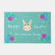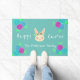 Personalisieren Sie Ihre Veranda für Ostern! Die Sommerpferde zeigt ein niedliches Cartoon Hand illustriertes Hasen mit einer niedlichen und trendigen Blume Krone. Auf beiden Seiten des Kaninchens stehen die Worte "Happy Oaster". Der Name Ihrer Familie steht unter einem weißen niedlichen Text.