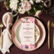 Trendy rot rosa Aquarell Hochzeitsmenü. Bearbeiten Sie Details aus Ihrem arrangierten Hochzeitsmenü.
