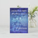 Sets eines moderne bokeh Hintergrundes die Stimmung für diese trendy und funky Party Einladung. Tonal Kreise sprudeln gegen einen reichen Kobaltblau-Steigungshintergrund, um dieses eine Einladung vielseitig zu machen genug für Geburtstags-Party eines Erwachsenen, ein Wiedersehen, eine Unternehmensfunktion oder Öffentlichkeitsarbeiten oder förderndes Ereignis. Eine kundengebundene Ziffer oder ein Buchstabe wird in den unteren Ecken auf der Front hinzugefügt und zurück zu heben Sie den Grund für das Ereignis hervor. Zusätzlicher Text kann auf der Rückseite hinzugefügt werden oder gelöscht werden, um den hinteren freien Raum zu verlassen. Verfügbar in den abwechselnden Farben mit zusammenpassenden Produkten.