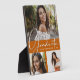 Ihre Lieblings-Fotos, das Wort Graduate, Ihr Name und Ihr Abschluss Jahr in elegantem Weiß auf gebrannter Orange , diese zerbrechliche Foto-Plakette mit eingebautem Sohle ist ein guter Sake, um sich an den besonderen Meilenstein Ihres Absolventen zu erinnern. **TIPP: Laden Sie alle horizontalen Foto hoch, um die besten Ergebnisse zu erzielen. Klicken Sie auf Weitere Links anpassen, um die Farbe, die Schriftart oder das Layout mit unseren Designtools zu ändern. Passende Einladungen, speichern Sie die Daten und mehr in unserem Shop.