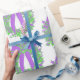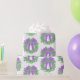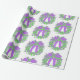 Dieser kühne, lila und grüne Weihnachtskranz auf weißem Hintergrund ist ein auffallendes Design auf diesem Urlaubspapier. Auch passende Gewebe- und Geschenketiketten sind erhältlich.