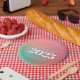 Trendy Class of 2024 Pink Gradient Abschluss Paper Teller mit einem lustigen und hellen Farbverlauf in den Farbtönen Rosa, Pfirsich, Korallen und aquamarin Grün, sowie stilvolle Kalligraphie und Ihr Abschluss Jahr.