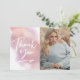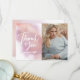 Senden Sie Ihren Dank auf dieser personalisierten, trendy Fotokarte. Sie kennzeichnet Aquarellschatten von rosa, Koralle und Malvenfarbe und Ihr Lieblingsfoto<a href='http://www.freepik.com/free-vector/thank-you-cards-painted-with-watercolors_917409.htm'>Entworfen durch Freepik</a>. <br/><br/>Die Karte ist einfach, mit Ihrer Benennung, Schriftart-, Schriftartfarbe-, Papierformwahlen und Wahl von sechs Papiersorten besonders anzufertigen<br/><br/>Nicht genau was suchen Sie? Alle unsere Produkte können kundenspezifisch angefertigt werden, um Ihren Bedarf an keiner Extragebühr zu erfüllen<br/><br/>Treten Sie mit uns einfach bei askcottonlamb@gmail.com in Verbindung<br/><br/>Koordinierenprodukte verfügbar: Fragen Sie uns einfach!