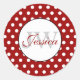 Trendy Dark Red and White polka dots Monogram Runder Aufkleber