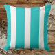 Trendy Deep Aqua And White Awning Striped Kissen