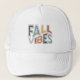 Fall Vibes Trucker Hat mit Fall Vibes in gedämpften Herbstfarben und Skripten in Vintagen, Not leidenden Schriften. Zusätzliche Farben verfügbar.