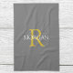 Trendy DIY Monogram & Name, Gold/Weiß Text, Grau Geschirrtuch