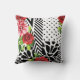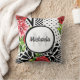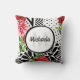 Trendy Geometric Stripe Muster Red Foral Monogram Kissen
