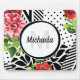 Trendy Geometric Stripe Muster Red Foral Monogram Mousepad