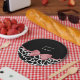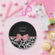 Trendy, schwarz-weiße Giraffen bedruckte Teller mit einem gürlich rosa Band, die in einen niedlichen Bogen gebunden ist. Personalisieren Sie dieses elegante Tierdesign, indem Sie den Namen des Party hinzufügen. Flachbild, nicht eigentlicher Bogen.