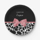 Trendy Giraffe Print Rosy Pink Bow mit Namen Pappteller