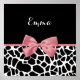 Ein trendiges Schwarz-Weiß-Giraffen-Printposter mit einem gürlich rosa Band, das in einen niedlichen Bogen gebunden ist. Personalisieren Sie dieses elegante Tierdesign, indem Sie Ihren Namen hinzufügen. Flachbild, nicht eigentlicher Bogen.
